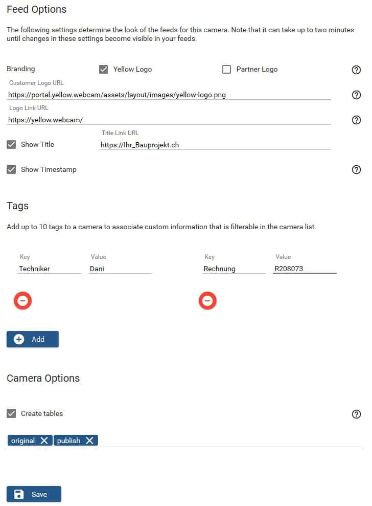 Ein Feed stellt die Publikation einer Bildtabelle dar. Wenn keine Publikation gewünscht ist und Aufnahmen nur in einem Archiv gesammelt werden sollen, ist die Konfiguration hier abgeschlossen.