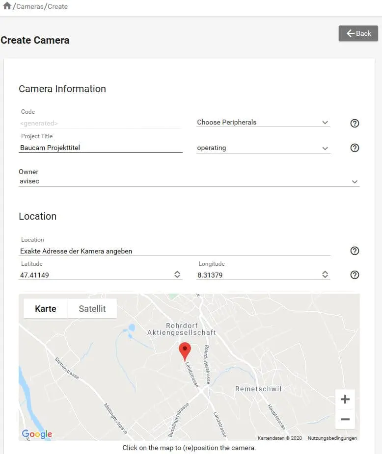 Je Benutzer kann ein individueller Account angelegt werden. Ein Benutzer hat Zugang zu mindestens einer oder auch mehreren Baucams.
