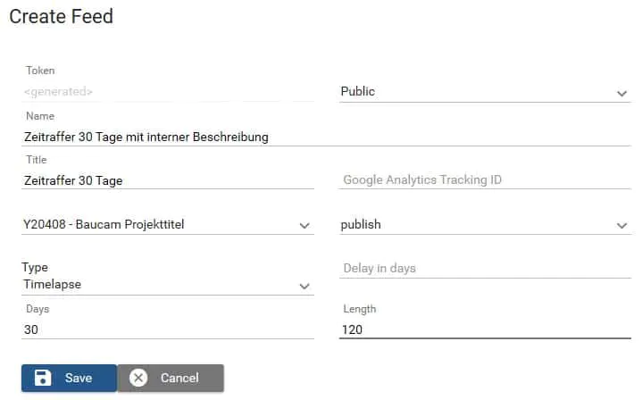 Ein Feed = Publikation. Ein Feed kann OHNE Passwort eingesehen werden. Sobald der Token bekannt ist kann der Baucam Feed angezeigt werden.