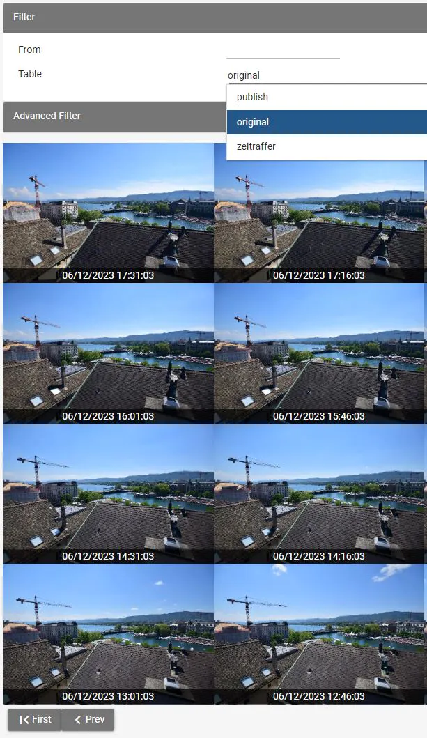 - Die Webcam soll während des Projektes datenschutzkonform veröffentlicht werden. Dazu wird die Bildauflösung auf das für die Webseite notwendige Mass reduziert. Das Bild wird häufig verkleinert, oft auch beschnitten und sensible Bildbereiche werden verpixelt.